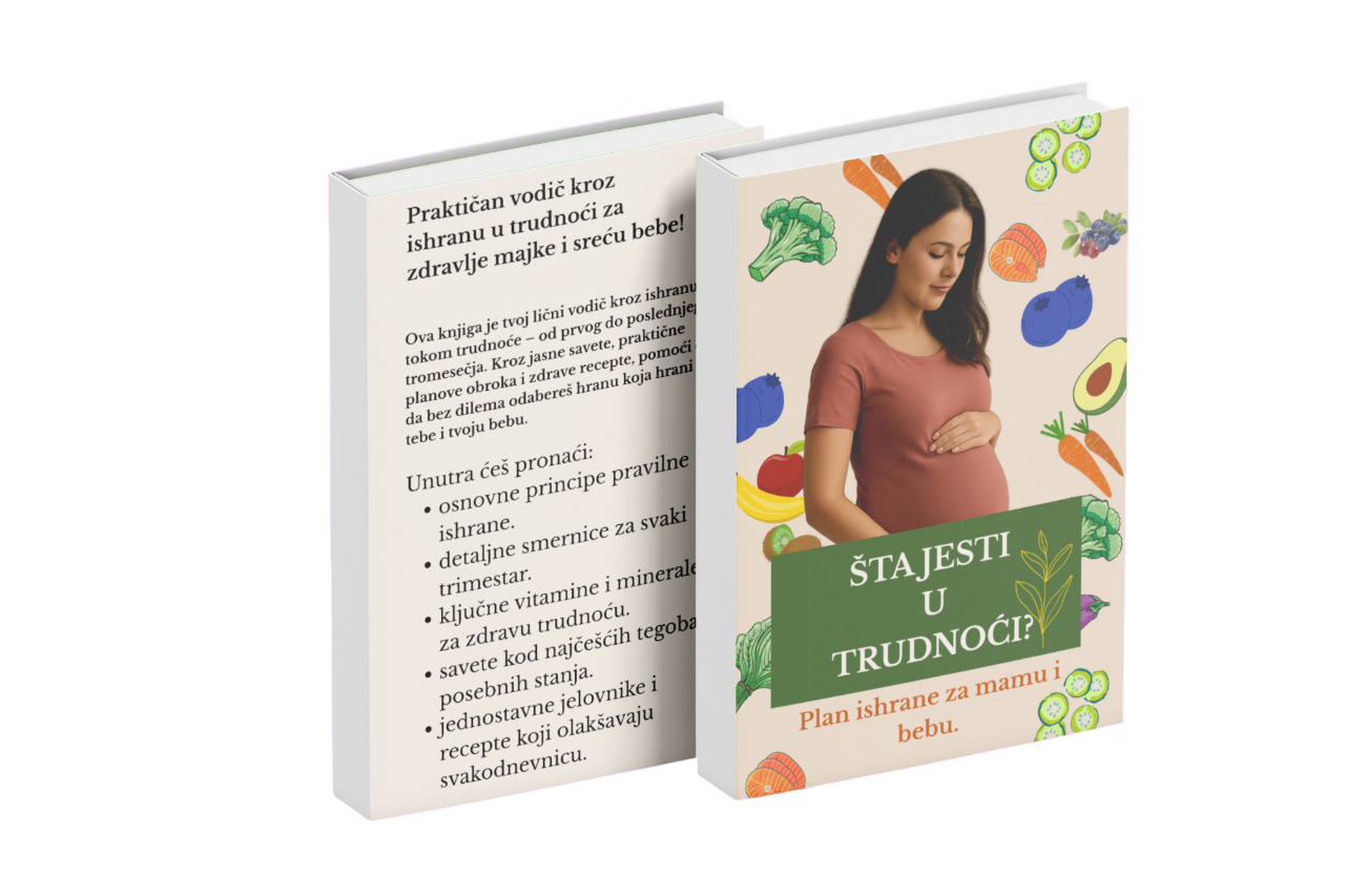 Jednostavan i praktičan priručnik sa jasnim smernicama, jelovnicima i receptima kroz sva tri tromesečja. Bez strogih pravila i komplikovanih dijeta – samo mali, svakodnevni izbori koji donose veliku razliku za tvoje zdravlje i razvoj bebe.